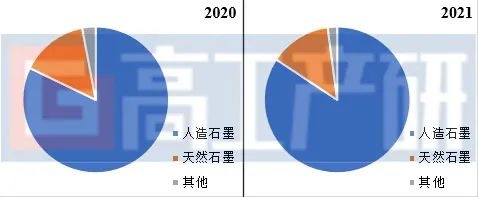 2020-2021年中国负极材料细分产品结构(%)