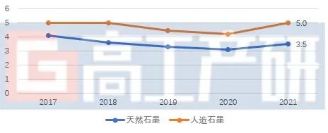 2017-2021年中国负极材料价格走势(万元/吨)
